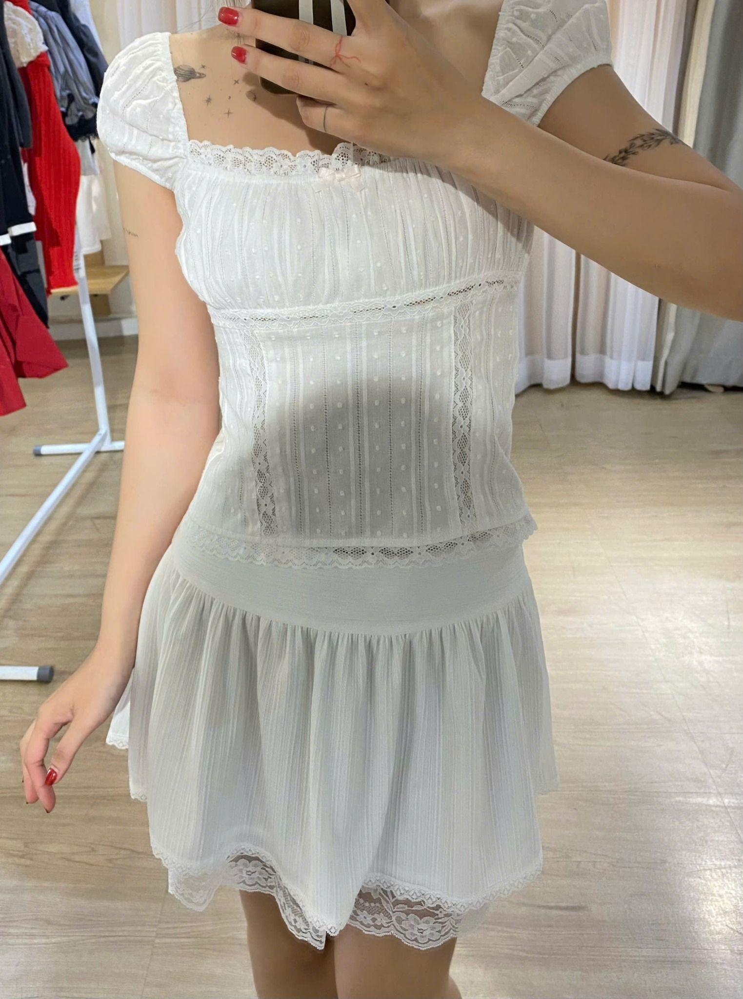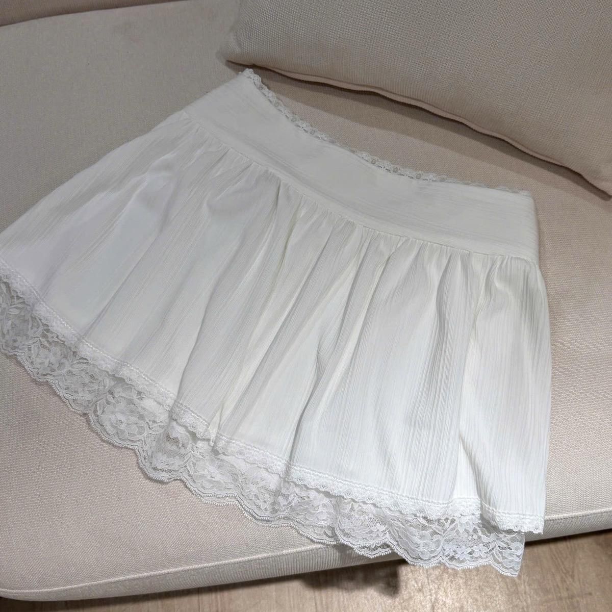 The Amelie Skirt is a charming white skirt designed in the coquettish style, perfect for adding a touch of elegance and femininity to your wardrobe. Featuring delicate lace trim along the edges, this skirt exudes a romantic and playful vibe. It comes fully lined for comfort and includes a convenient side zipper for easy wear. Available in two sizes, the Amelie Skirt is tailored to flatter your figure: