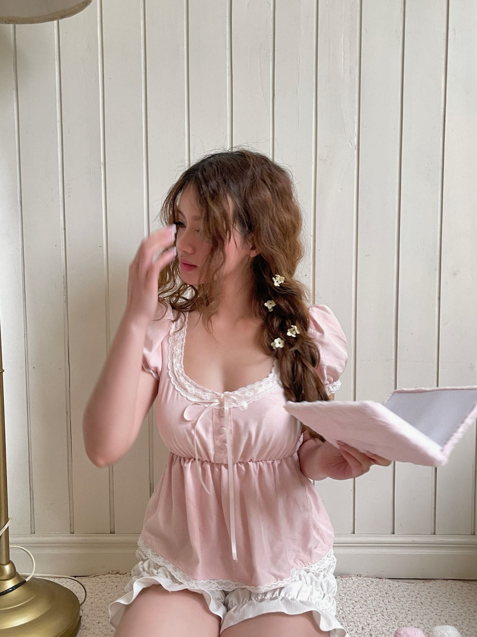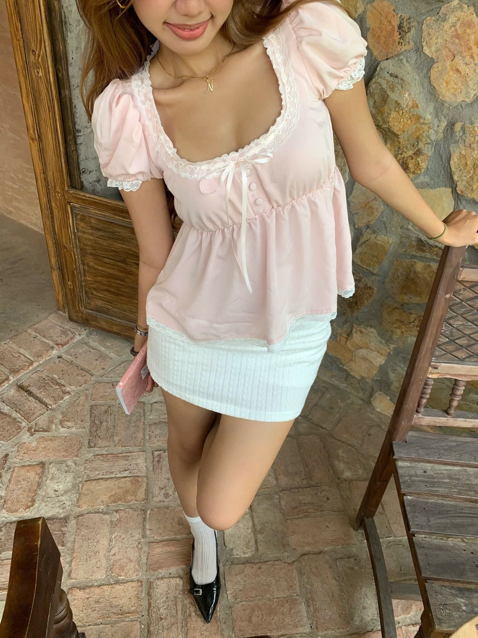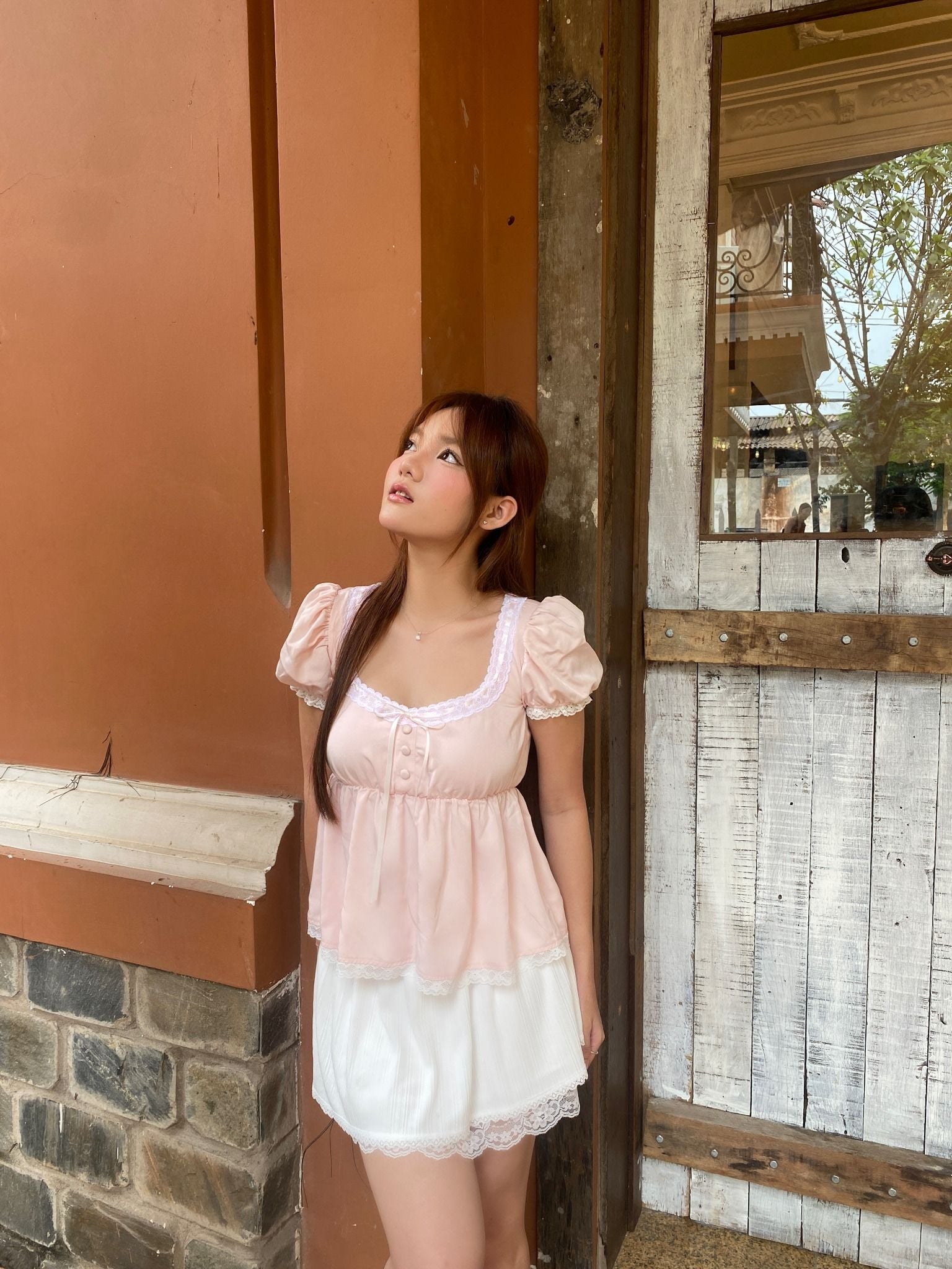 The My Baby Doll Pink Top is a charming and feminine piece crafted from a luxurious blend of pink kaki silk fabric, offering a soft, smooth feel with a subtle sheen. This top is delicately accented with lace detailing, adding a romantic and elegant touch to its design. It also features a handmade bow, carefully sewn to enhance its dainty, doll-like aesthetic. Combining comfort with a chic, vintage-inspired look, the My Baby Doll Pink Top is perfect for those who love a blend of softness and sophisticated style in their wardrobe.