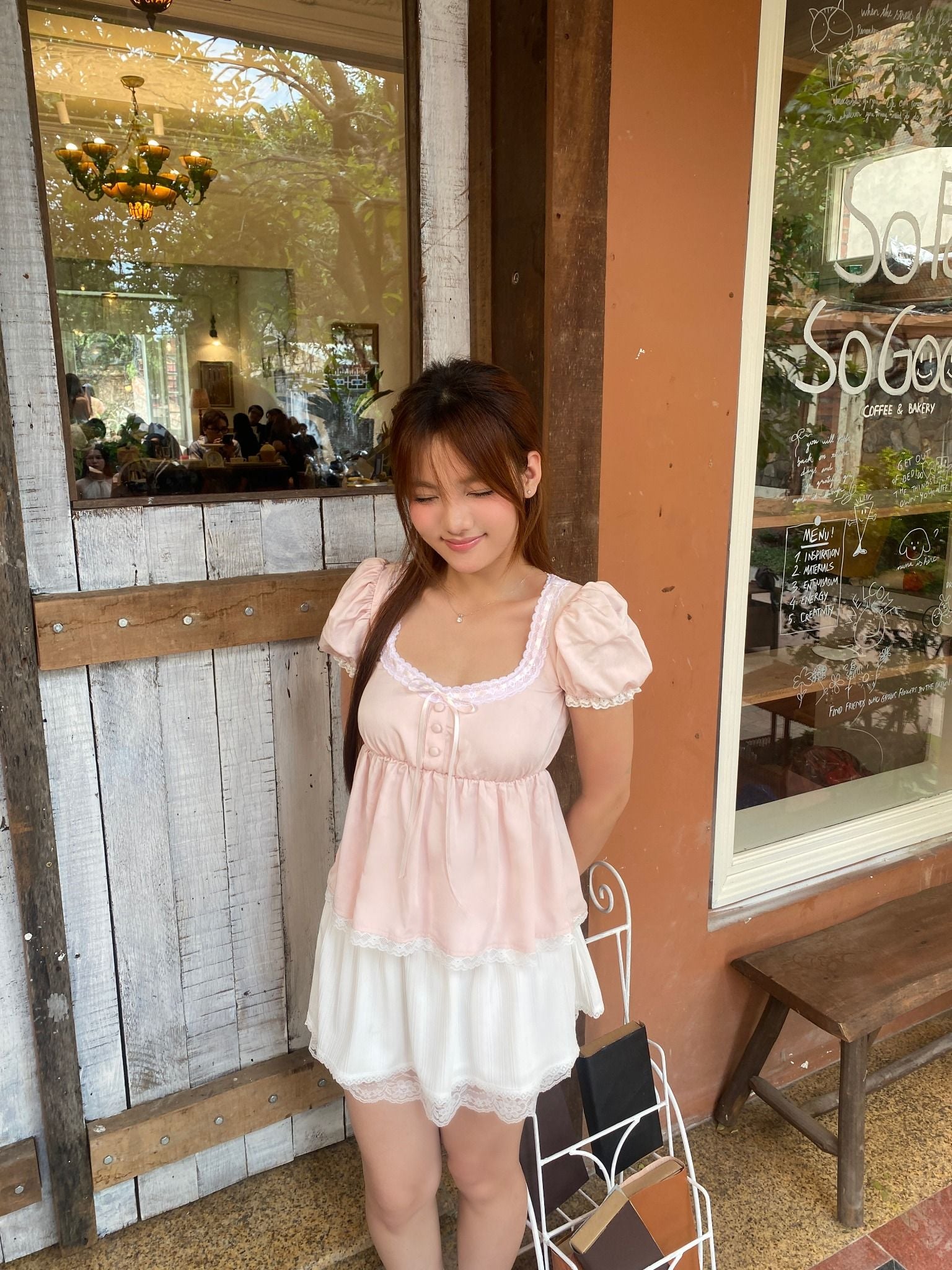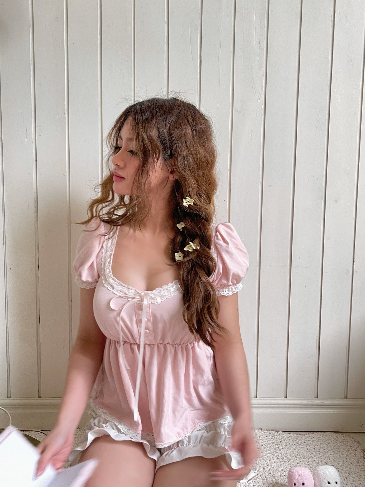 S Size: Bust: 85 cm Waist: 68 cm M Size: Bust: 92 cm Waist: 74 cm These measurements reflect the dimensions of the dress, ensuring a flattering baby doll silhouette with ample room for ease and movement. Please note that the loose-fitting nature of the design may allow for slight variations in fit depending on individual body shapes.